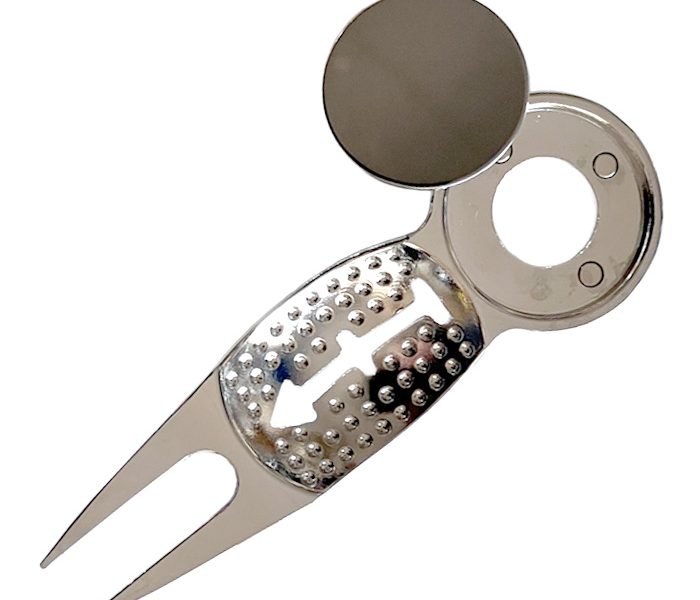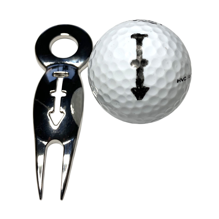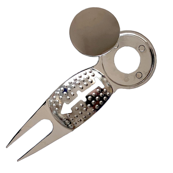 ・グリーンフォーク中央にゴルフボールラインマーカー用ステンシルが用意されています。